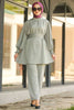 A beautiful Rahaf Sage Green Set in beige color dress will make your look classic. Now style yourself with a super comfortable and season friendly dress. Unique sleeves and belt style makes it super eye-catchy.