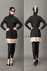Make a splash this summer with this modest swimwear option. This Burkini comes only in black color in a two-piece set:dress with attached head piece and loose pants.Ideal for the women in tune with fashion & flair! Looks elegant with flattering fit and modest color.