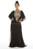 With its simple silhouette and unique embroidery and crystal details, the Dariah Kaftan is a very popular choice among those looking for a non-traditional kaftan option, as it easily translates to any occasion. This simple piece is embellished with intricate silver beading and features a ¾ .sleeve in a trendy batwing cut. The Dariah Kaftan is designed with the highest quality fabric and materials, is floor-length and includes a hidden adjustable waistband for a perfect fit.