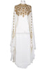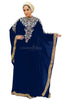 The breathtaking Mirna Kaftan captures all the beauty and culture of Morocco with its trendy design, intricate embroidery, and gorgeous crystal embellishments. This lovely, handmade kaftan is designed with the highest quality Georgette fabric and a soft crepe lining and is brimming with stunning design details that make this garment a knockout piece. This kaftan consists of three unique separates, including a chic dress, cardigan, and belt, featuring ornate gold detailing about the collar, and down the length of the dress. Matching hijabs are available.