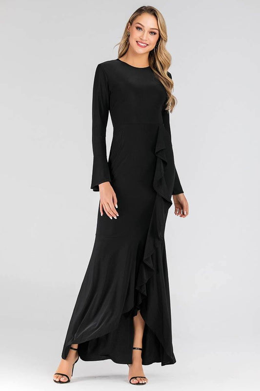 Sequin V-Neck Lantern Sleeve Maxi Dress