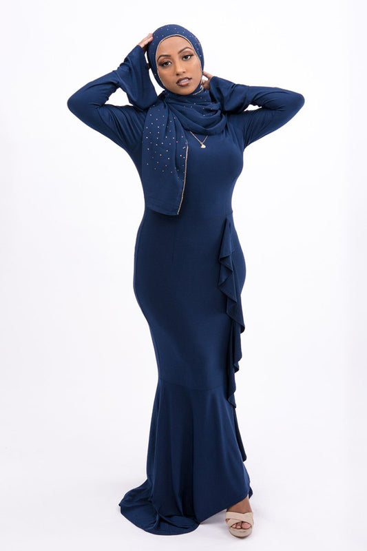 Tanya Ripple Flowy Maxi Dress Navy Blue